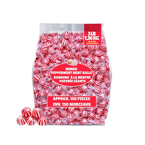 Peppermint Candy Balls Bulk 3 lb Individually Wrapped Red & White Hard Mints Classic Round Peppermints for Valentines Day, Candy Buffets, Party Favors & Events