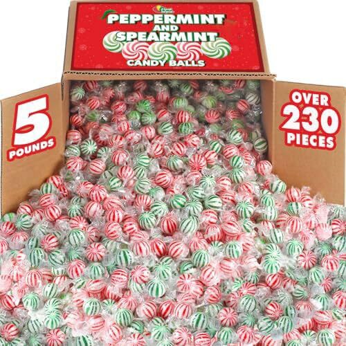 Assorted Jumbo Mint Balls - Peppermint & Spearmint Candy - 5 Pounds - Bulk Mint Hard Candy - Individually Wrapped for Refreshing Office Snack