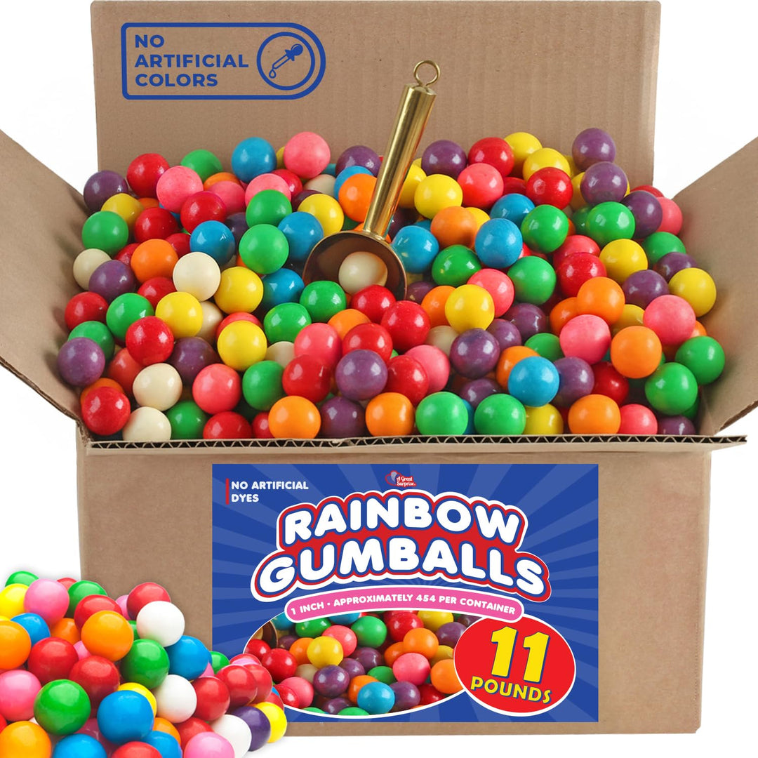 Bulk Rainbow Gumballs 11 lb, Approx. 470 Pcs. Naturally Colored Gumballs with No Artificial Dyes Perfect for Office Candy Bowls, Breakrooms, Vending Machines & Party Buffets