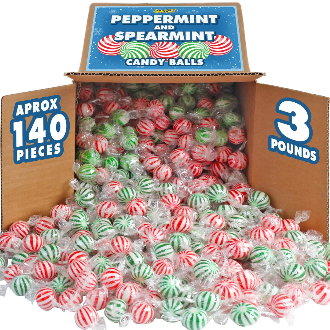 Christmas Candy Mint Balls Assortment - 3 Pounds - Big Bulk Spearmint & Peppermint Hard Candy - Mint Bulk Candies - Individually Wrapped Bulk Mints - Refreshing Office Snack