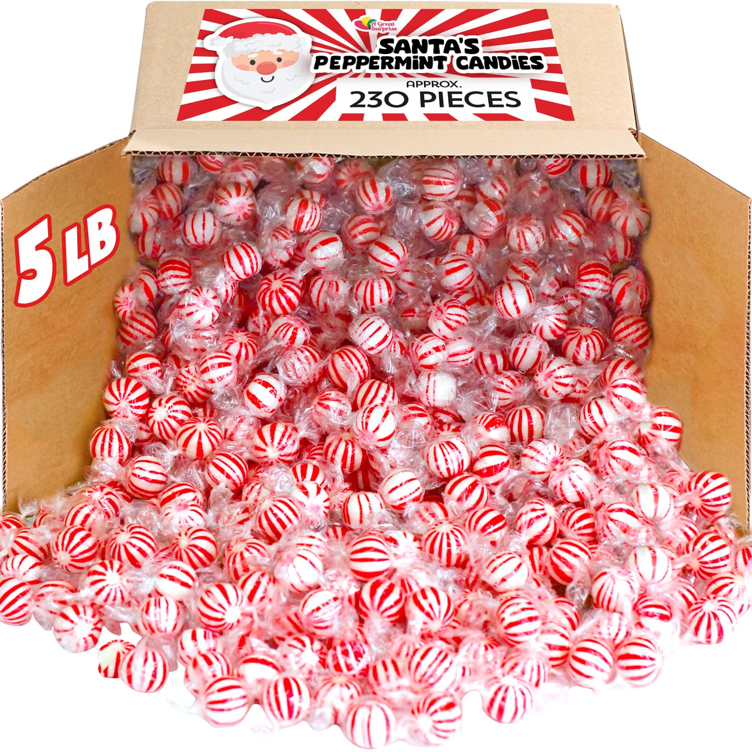 Christmas Peppermint Balls - 5 Pounds - Holiday Mint Bulk Hard Candy - Red and White Striped Hard Candies
