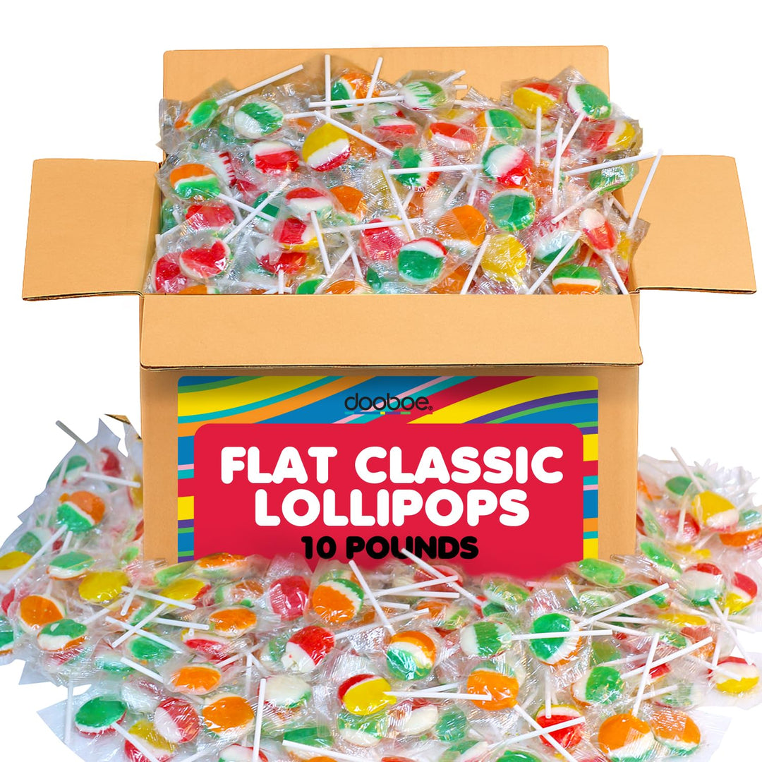 Dooboe Lollipops Individually Wrapped - 10 Pounds - Approx. 400 Lollis - Bulk Flat Classic Suckers - Bulk Parade Candy - Assorted Fruit Flavors - Candy Suckers for Classroom, Office - Big Bulk Candies (Rainbow)