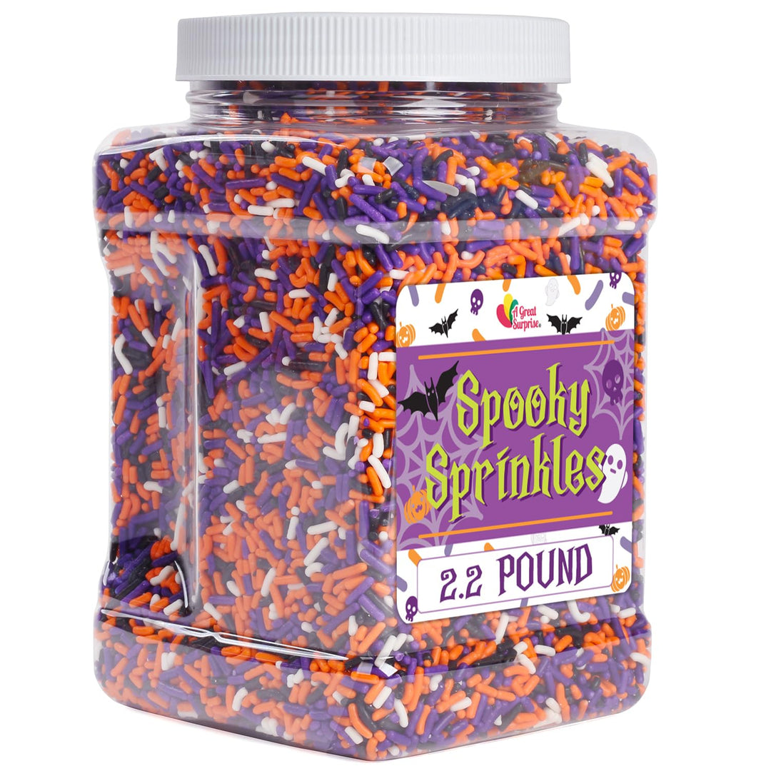 A Great Surprise Halloween Sprinkles - 2.2 LB - Orange, Black, Purple and White Jimmies - Spooky Season Sprinkles