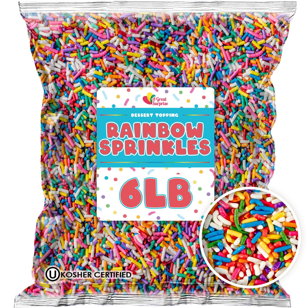 A Great Surprise Rainbow Sprinkles Bulk - 6 Pounds - Bulk Rainbow Jimmies - Kosher - Decorating Cookies, Ice Cream Toppings, Cake