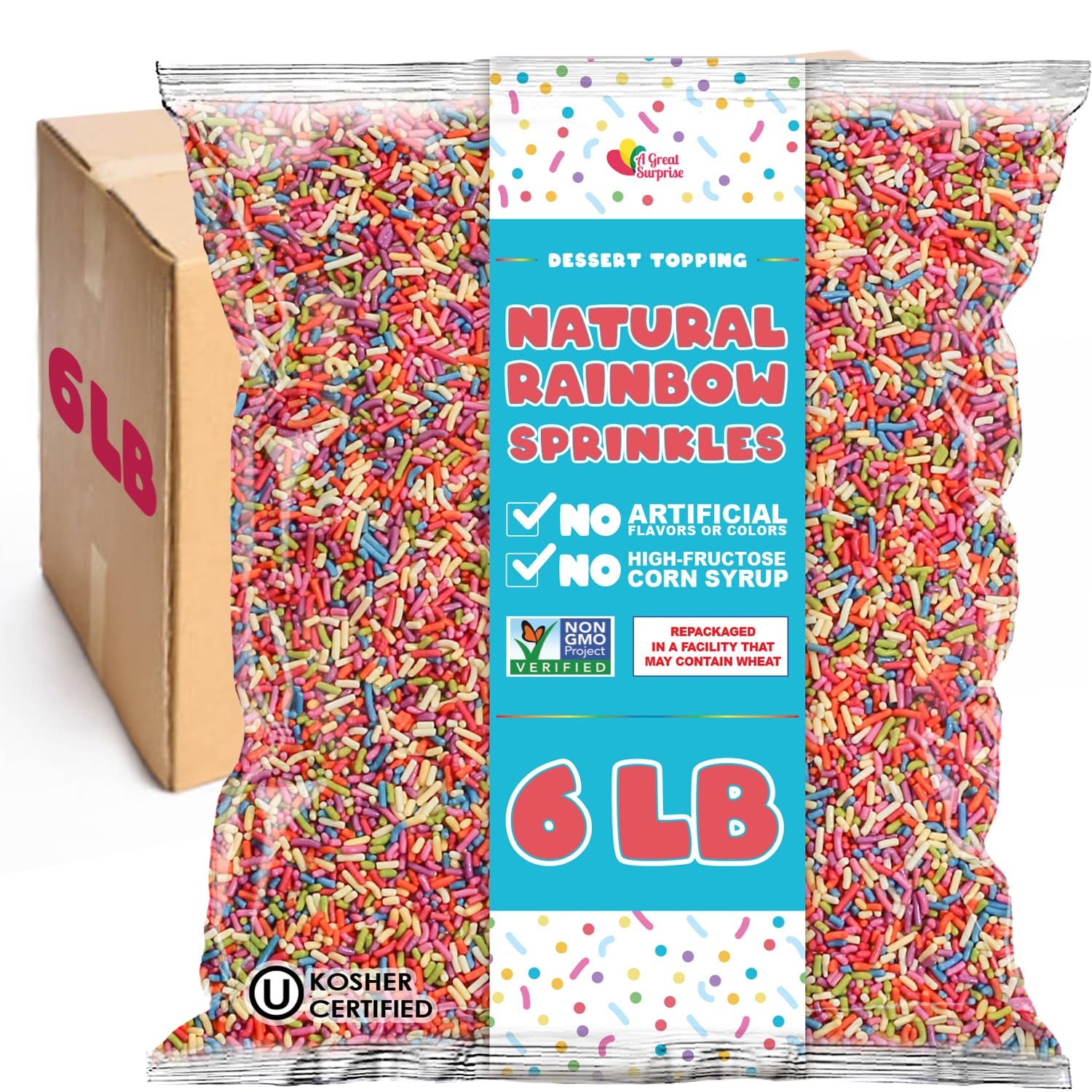This listing includes a 2.2-pound bulk container of dye-free rainbow sprinkles, designed for frequent baking, decorating, and dessert use.