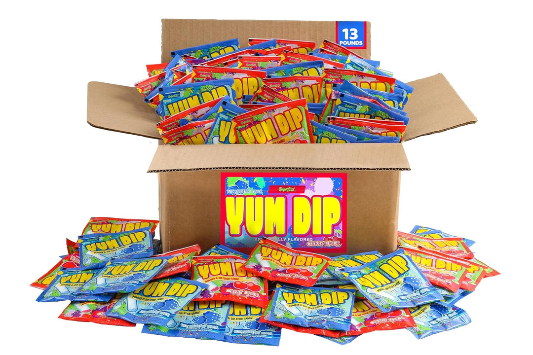 Bulk Powder n Dip Stick Candy - Over 1,000 Fun Size Bags - 13 Pound Box - Assorted Flavors Cherry & Blue Raspberry - Bulk Kids Classic DipNLik Candies - Yum Dip